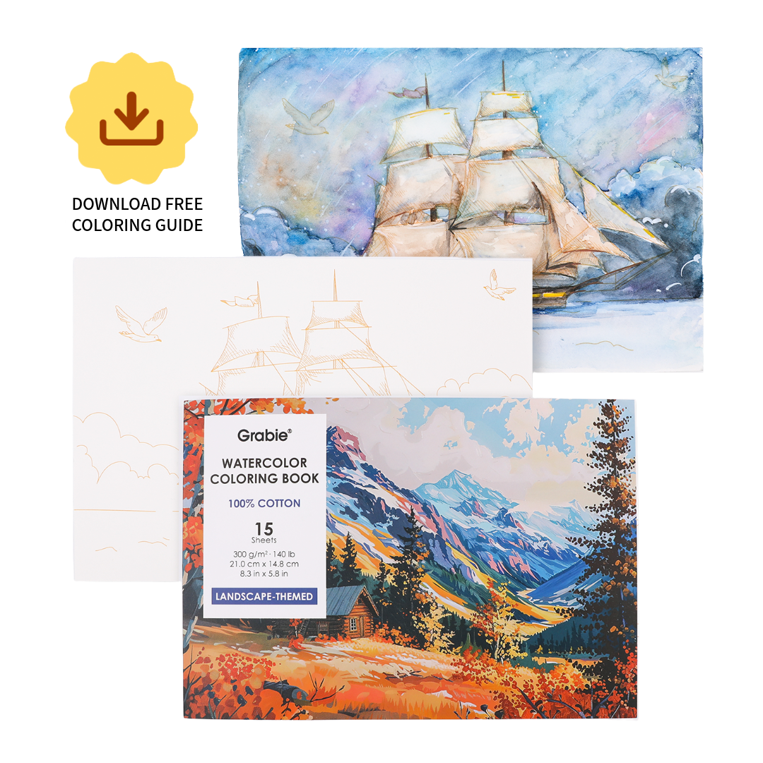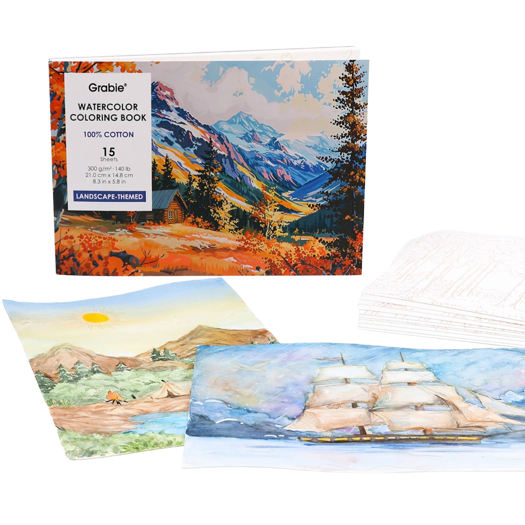 Landscape-Themed Watercolor Coloring Book by Grabie