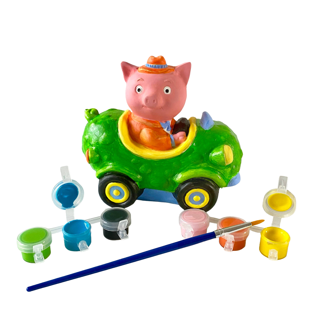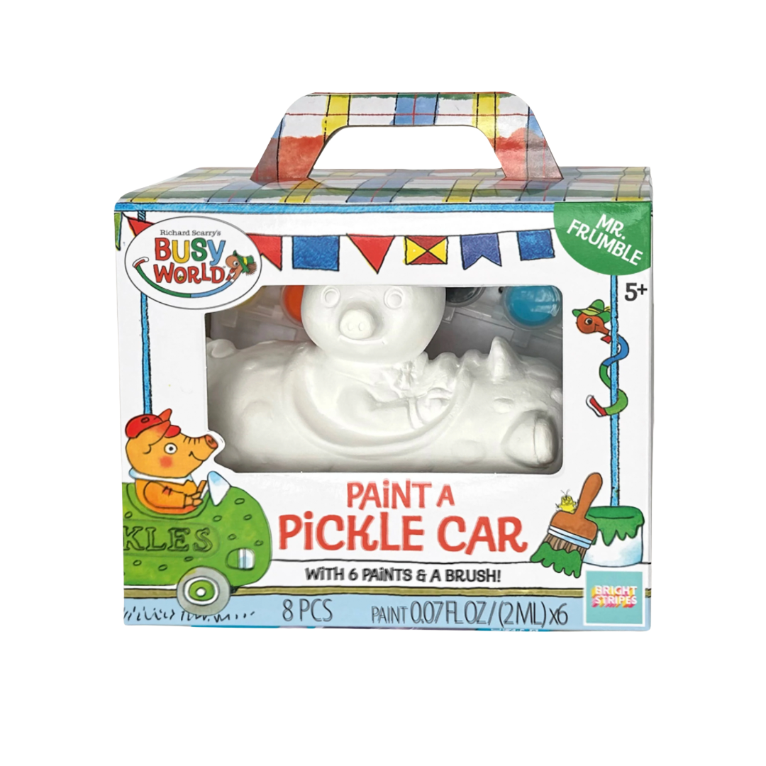 Paint Mr. Frumble in his iconic Pickle Car from Richard Scarry’s Busy World. This painting kit for kids comes with a plaster figure, 6 paints and a brush. Create a high-quality, keepsake pal with our car painting kit! Get creative and add fun details! It’s the perfect kids DIY painting activity for birthday parties or crafty afternoons.