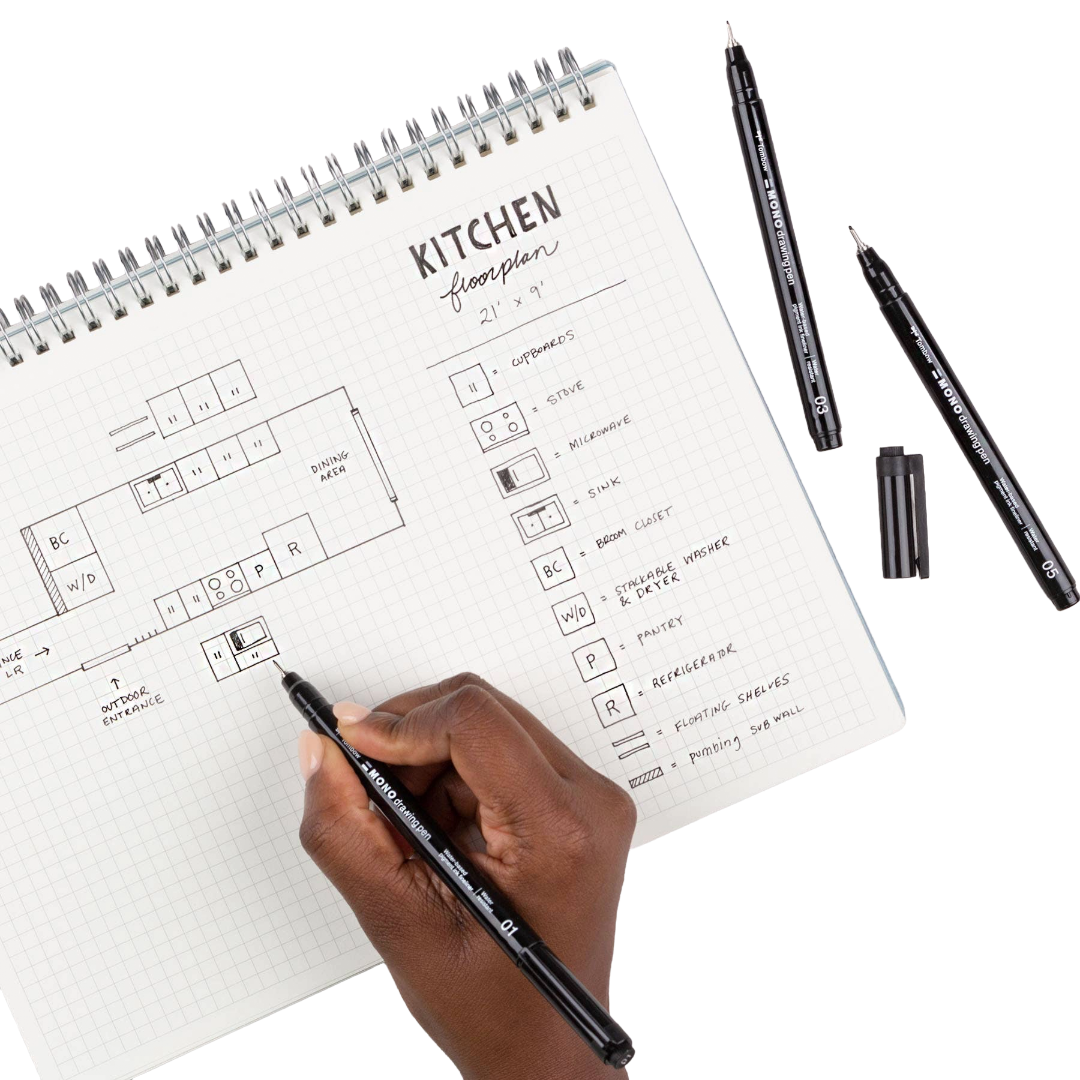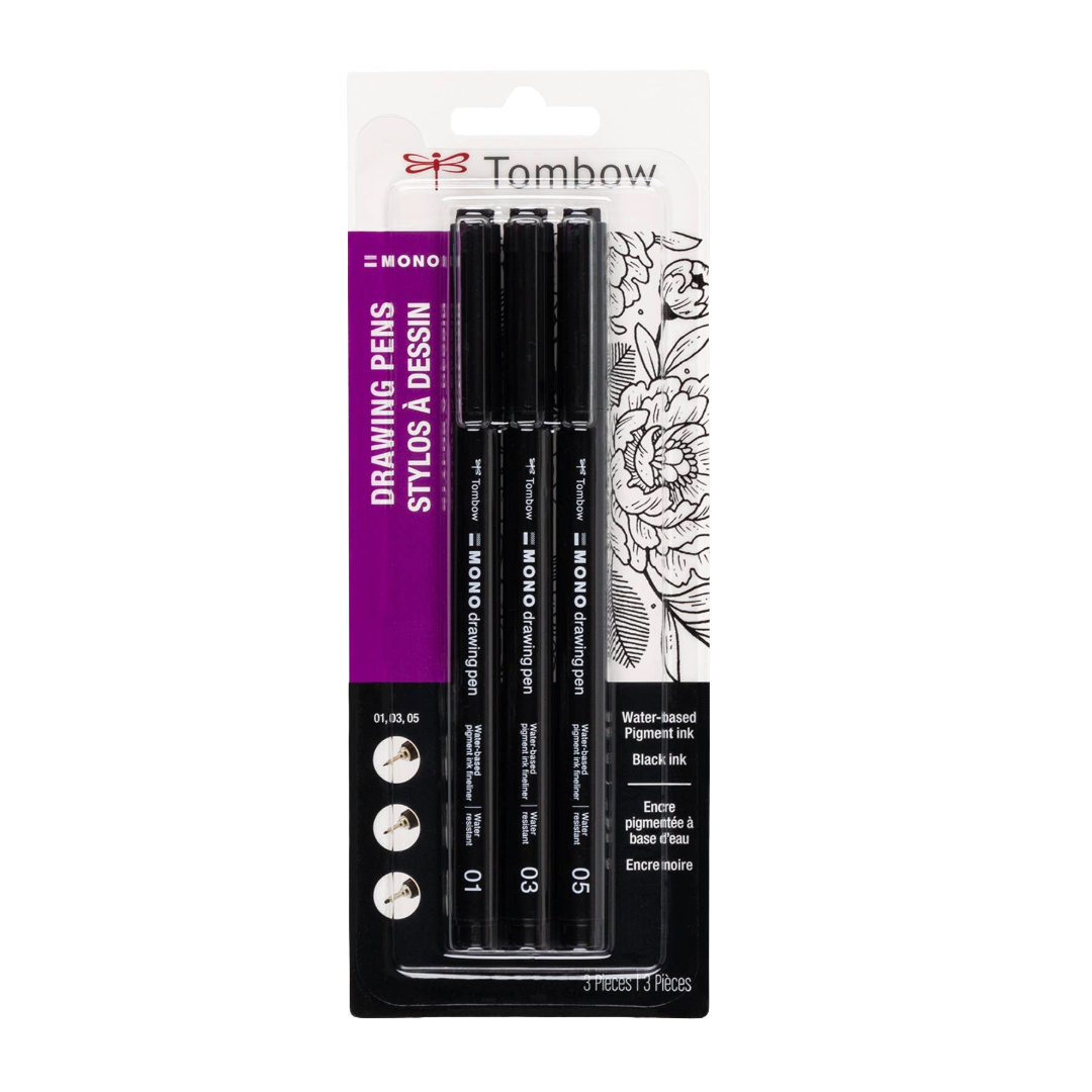 Water-based pigment ink drawing pens produce smooth, skip-free drawing and writing with no smudging. Ink is light resistant and dries instantly! Long metal nib allows for clear visibility when drawing. Excellent nib strength withstands firm pressure without bending tips, ensuring steady ink flow. Great for use with colored art markers and colored pencils. Produces excellent results when used with drawing, marker, watercolor and mixed media paper. Ideal for illustrations, technical drawings, manga, anime, lettering and journaling. Create precise drawings with 3 tip sizes – 01, 03, 05.