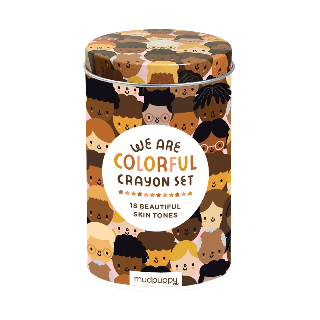 Open up the We Are Colorful Skin Tone Crayon Set from Mudpuppy and celebrate the wonderful range of skin tones. This crayon set includes 18 beautiful crayons in skin tones beyond just peach and brown, helping children feel represented. The tin package makes for a great gift!