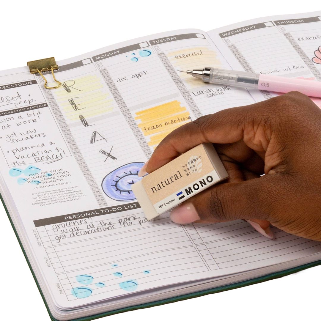 The MONO Natural Eraser is biomass-derived made from a minimum of 10% scallop shells! This new environmentally friendly eraser offers the same high-quality performance as the original MONO Eraser, cleanly removing unwanted lines and marks with little pressure and without damaging paper. The protective paper sleeve keeps eraser clean from graphite and other dust particles and is made with 70% wastepaper pulp. Great for art, school and office use. PVC and phthalate-free.