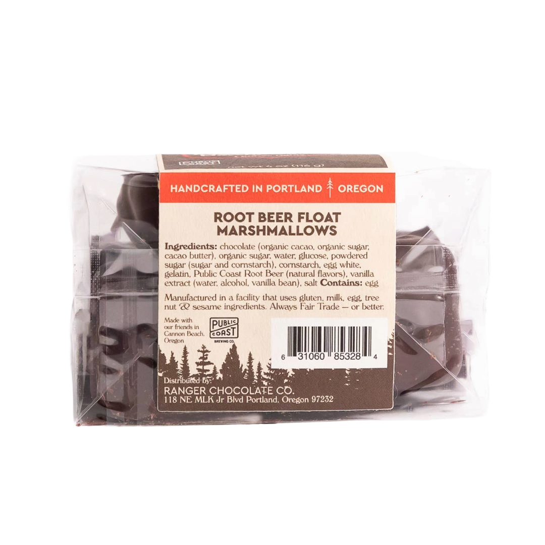 Ranger's root beer float marshmallows are made with Public Coast Brewing Co.'s Root Beer. Double dipped in our Classic Dark Chocolate, these are a surprisingly delicious twist on our classic vanilla bean marshmallows.