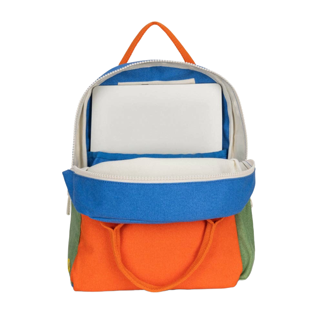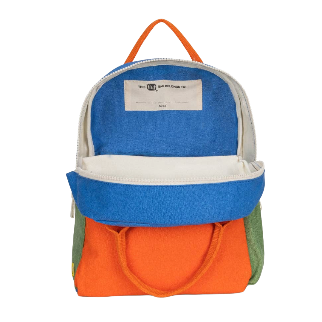 This is the scaled-down version of Fluf's classic backpack. Perfectly sized for younger kids or smaller daily hauls. Made with sturdy, GOTS-certified organic cotton canvas. Interior sleeve and flat front pocket keep things organized. Sustainably and ethically handmade. All Fluf products are tested to the highest EU standards, and are free of all chemicals known to be harmful (including PVC, BPA, phthalates, heavy metals, all PFAS chemicals, and more.