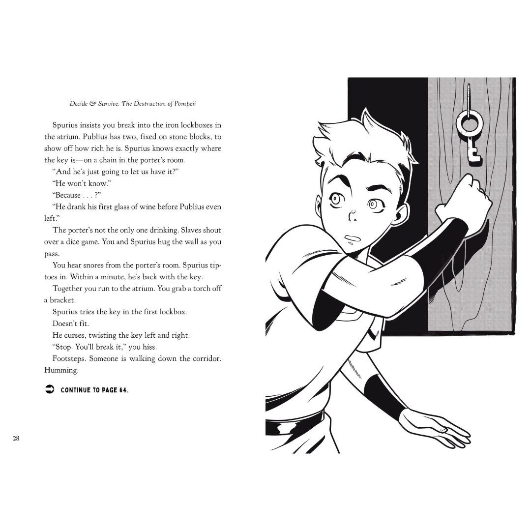 A fast-paced, interactive adventure series for kids, featuring death-defying moments in history! This time featuring the destruction of Pompeii! The eruption of Mount Vesuvius in southern Italy in 79 A.D. is perhaps the most famous disaster in world history. Young readers make decisions and determine their own survival by joining the inhabitants of Pompeii in the days and hours before and after the devastation in Decide and Survive: Destruction of Pompeii. Don't forget: YOU, the reader, are in the driver's seat! This time, you're eleven-year-old Quentus, a Roman scribe and slave who's tasked with saving civilization, and himself, from a huge obstacle—a live volcano!