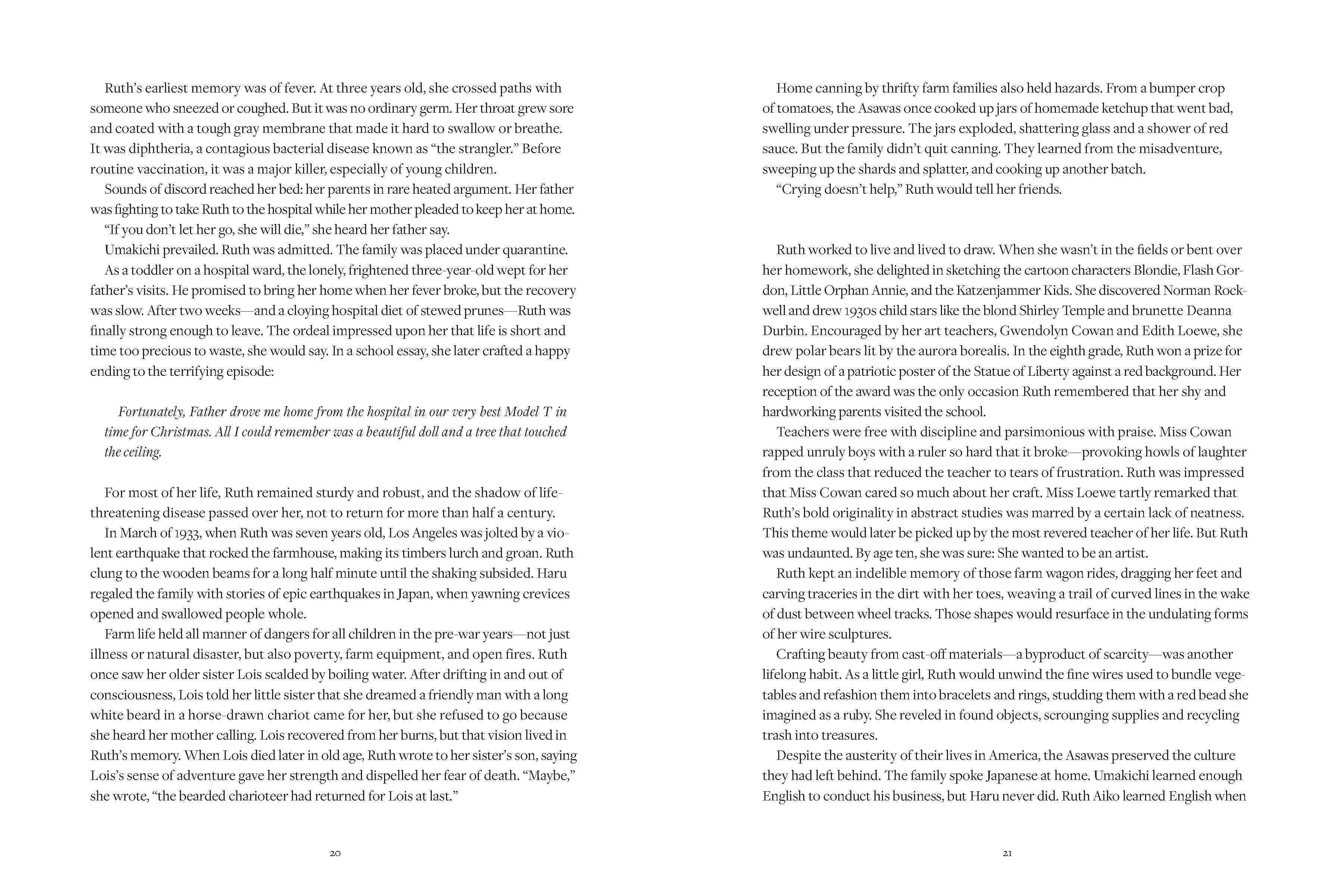 Now in paperback! The definitive biography and inspiring story of American sculptor Ruth Asawa. 'A fitting homage to this remarkable woman.' The Wall Street Journal This is the story of a woman who wielded imagination and hope in the face of intolerance and who transformed everything she touched into art. In this compelling biography, author Marilyn Chase brings Asawa's story to vivid life. She draws on Asawa's extensive archives and weaves together many voices family, friends, teachers, and critics to offer a complex and fascinating portrait of the artist. Born in California in 1926, Ruth Asawa grew from a farmer's daughter to a celebrated sculptor.