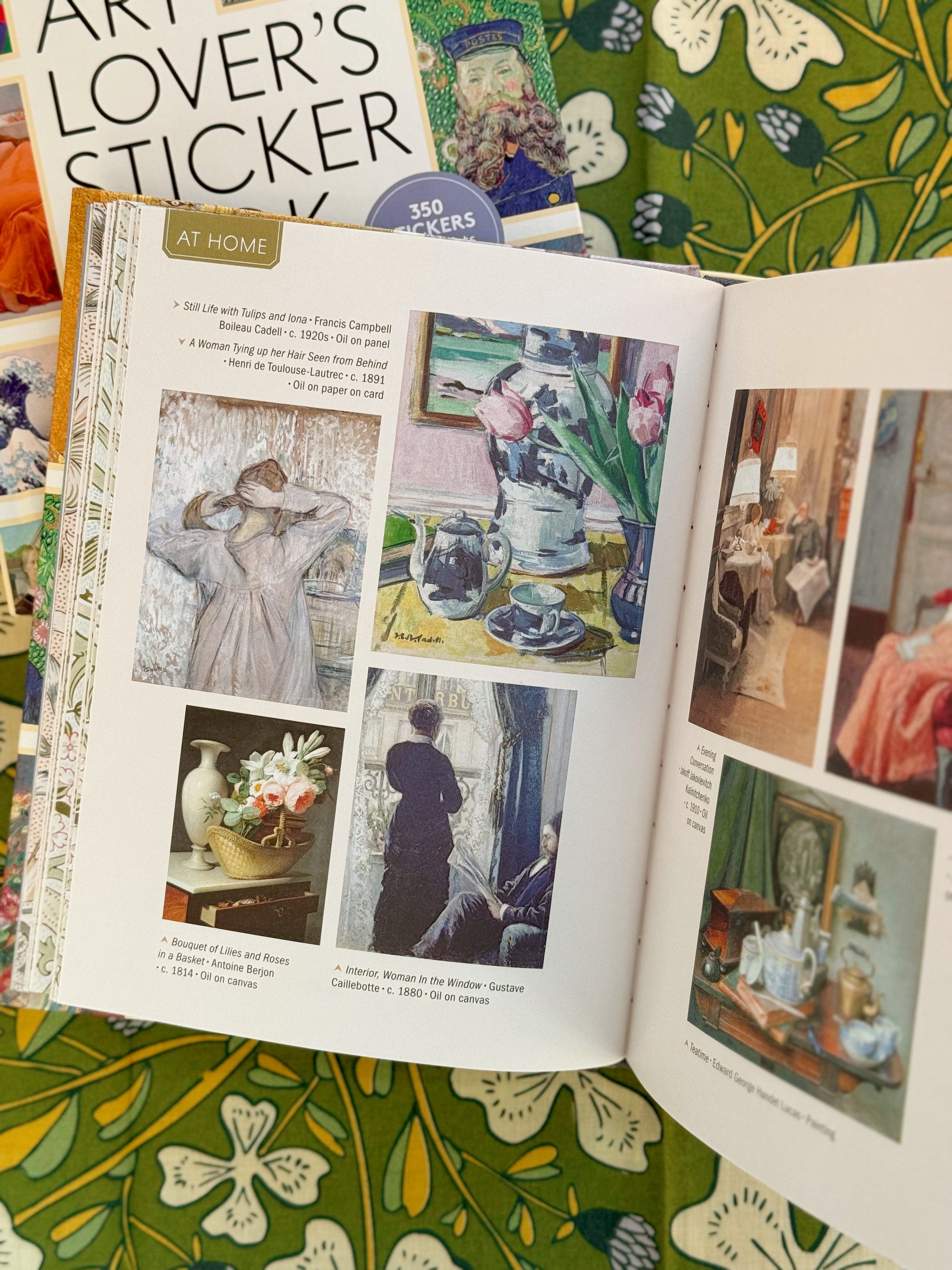 Experience the fascinating world of art like never before with these stickers of beautiful pieces from throughout history. Organized by 13 chapters (Frills and Fringe; Heaps of Hats; City Life), the book offers stickers featuring lesser-known works and the greats, such as Van Gogh's Almond Blossom, Vermeer's Girl with a Pearl Earring, Cassatt's Mother and Child, Van Eyck's The Arnolfini Portrait, Hokusai's The Great Wave, and so many more. Accompanying each image is a caption that details the artist, the title of the piece, the medium, and the date created. An amazing gift or self-purchase for art buffs and art history nerds, this unique sticker book will change the way you look atand interact withthese timeless masterpieces.