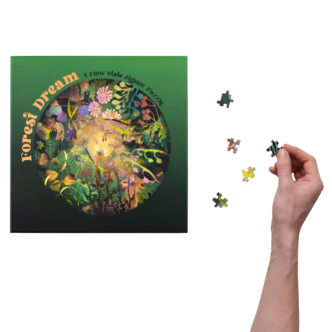 Discover the calming power of the flow state with Forest Dream, a 1,000-piece circular puzzle that captures the natural beauty of the woods. Includes a poster with the complete illustration to help you on your puzzling journey.