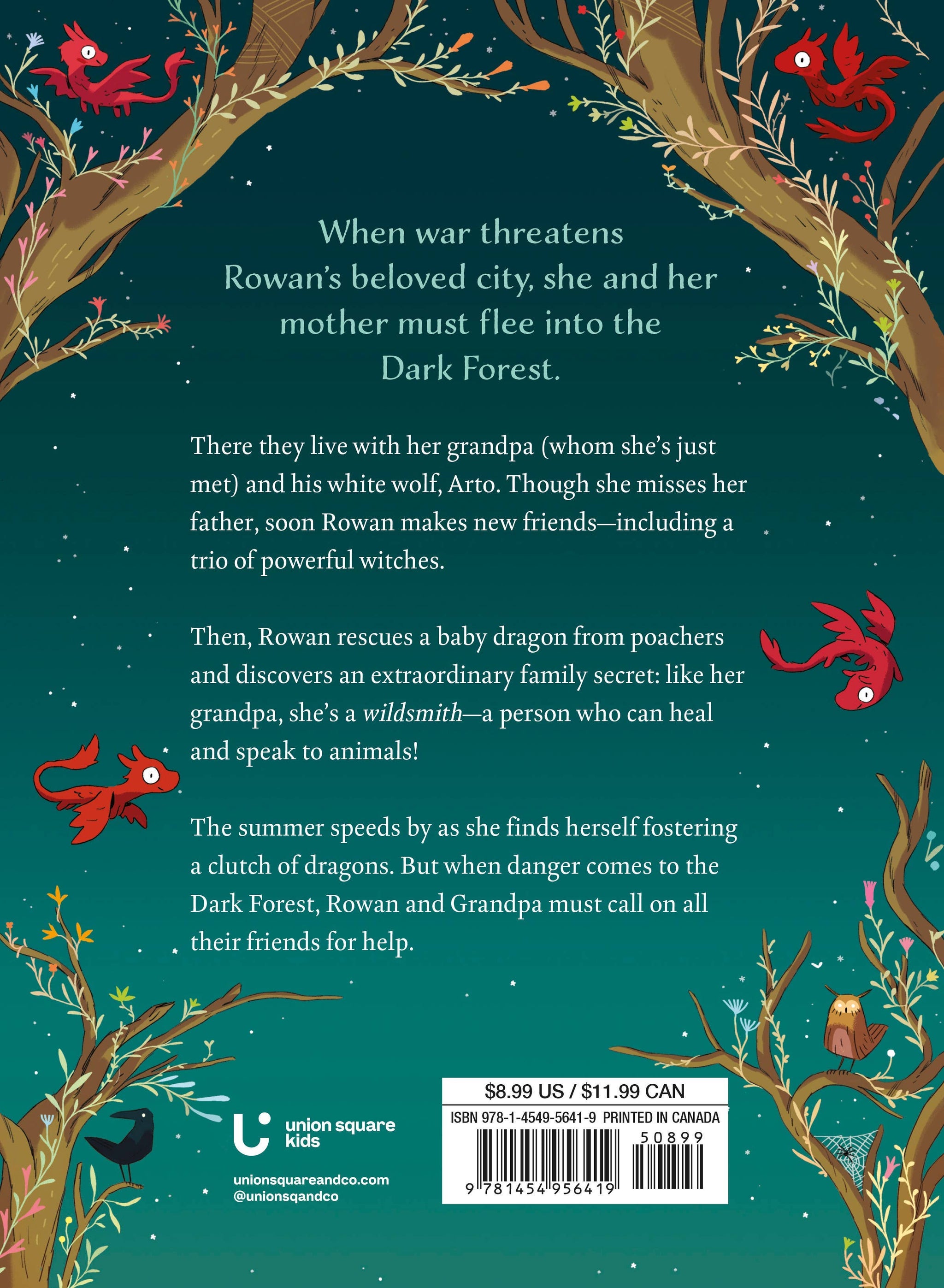 When war threatens her city, Rowan and her mother flee to the Dark Forest. There, she meets a grandfather she didn't know existed and his wolf, Arto. Rowan is homesick but soon makes new friends, including a trio of powerful witches. When Rowan rescues a baby dragon from poachers, she discovers the secret of her own identity. Like her grandfather, she's a wildsmith, who cares for and can speak to magical animals. But the poachers are relentless and will do anything to capture the dragons Rowan is fostering. Can Rowan, her grandfather, and their friends protect the dragons, and the forest?