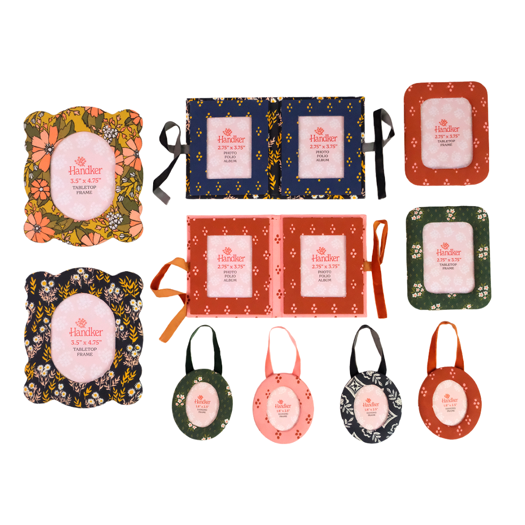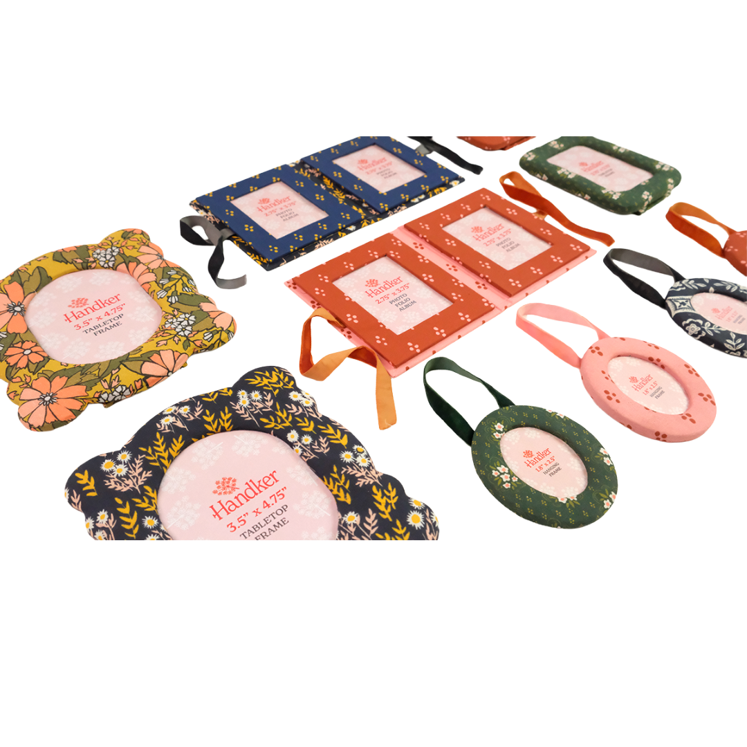 Introducing the Keepsake Collection: frames and ornaments made to hold the moments that matter most. Covered in signature Handker patterns, each piece adds a touch of nostalgic charm to your home while keeping memories close at hand.