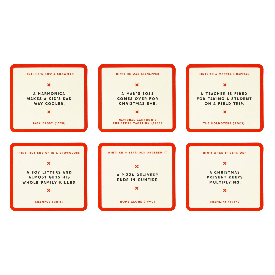 A party game all about identifying movies, from the worst descriptions humanly possible. Features 125 game cards, each featuring a uniquely-terrible description of a holiday movie. Includes instructions for two distinct ways to play (competitive & casual). Enjoy the game on the go or expand your original edition! Compete with your friends to identify popular Holiday movies from the most convoluted movie summaries possible. Has your mom ever tried to explain a film that she just watched? Did it make one ounce of sense? Of course not–and that’s precisely the inspiration for this game. For example: an orphan listens to a lady shower. Psst, it’s 'Elf’.