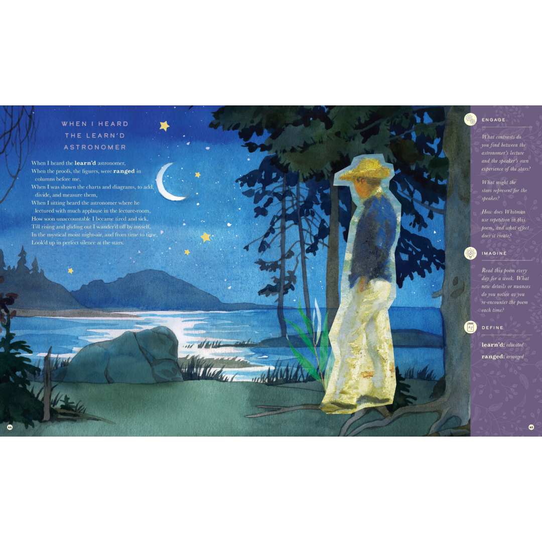 Lush and evocative, this treasury of Walt Whitman's classic poetry will be a household favorite for generations. Bound and curated, this full-color collage illustrated beauty will educate young readers while delighting the senses. Whitman is considered one of the most influential poets in American history. Incorporating both transendentalism and realism earned him the much lauded title of father of free verse, a form beloved among poets and students today. Whitman's influence remains strong in modern day poetry. Art historian Mary Berenson wrote, "You cannot really understand America without Walt Whitman." And modernist poet Ezra Pound called Whitman "America's poet.