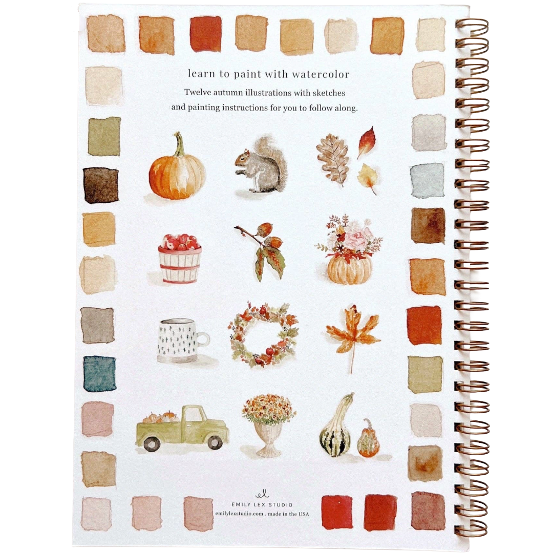 The Autumn Watercolor Workbook includes 12 fall-themed illustrations with an example of the finished painting, step-by-step instructions, and a lightly illustrated sketch for you to paint. It's just like a coloring book, but with watercolor! Enjoy this peaceful painting hobby on your own, with children, or with friends. Makes a wonderful gift. Perfect for artists of any age. Original artwork by Emily Lex.12 beginner-friendly illustrations