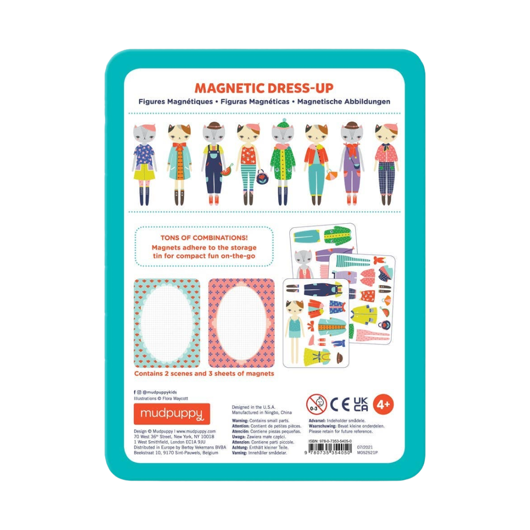 Mudpuppy's Cat Fashion Magnetic Figures comes with 4 illustrated background scenes and 3 sheets of magnetic parts for dressing up these adorable feline friends. The sturdy tin package offers hours of imaginative play with easy cleanup and storage of pieces. Mudpuppy Magnetic Tins are the perfect children's travel toy and quiet time activity.