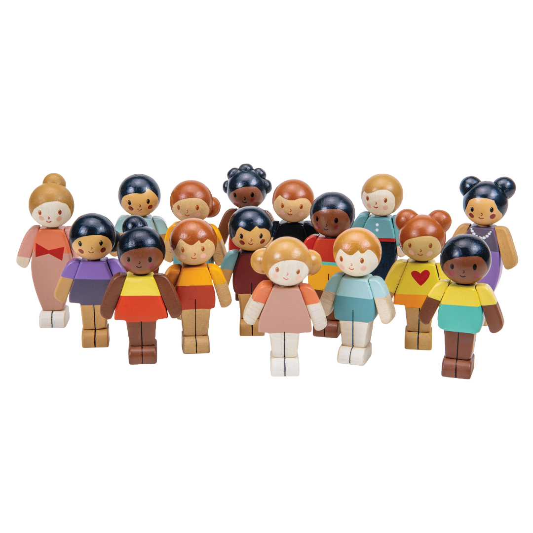 Made from beautiful, sustainably sourced rubberwood, these dolls have articulated arms, and pretty painted faces.