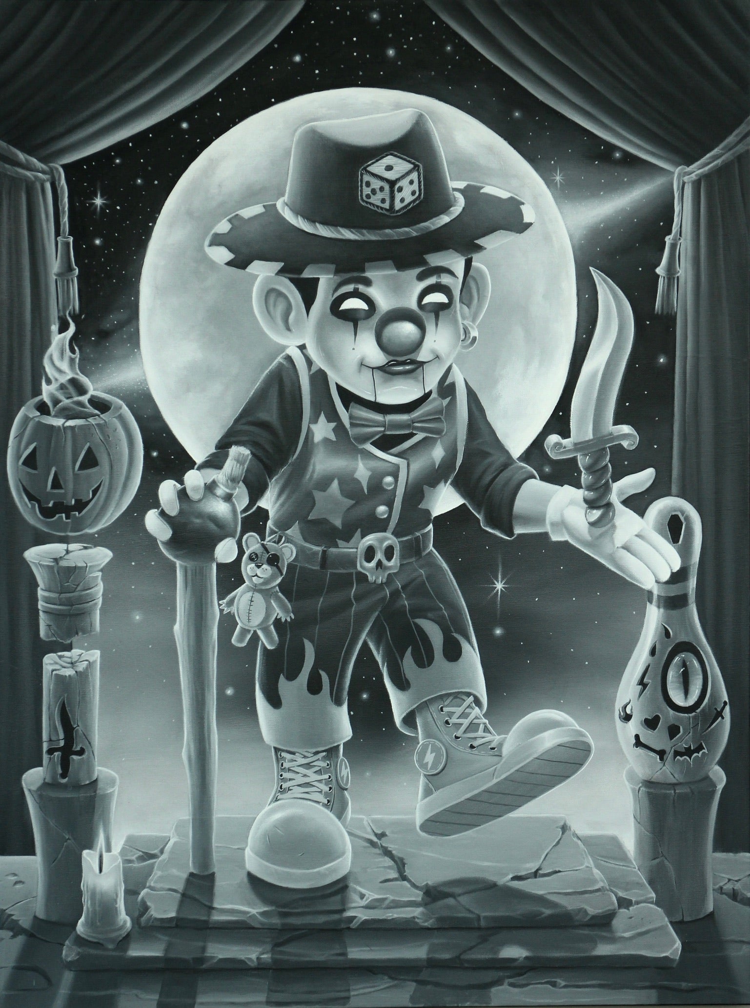 About the Artist: Dev O'Reilly is a surrealist painter known for his mischievous, dark, and playful artworks. Through his creations, he aims to strike a balance between innocent and darker subject matter. Halloween, in particular, serves as an endless source of inspiration for Dev, as it encompasses the fusion of fun and darkness that he seeks to capture in his art.
