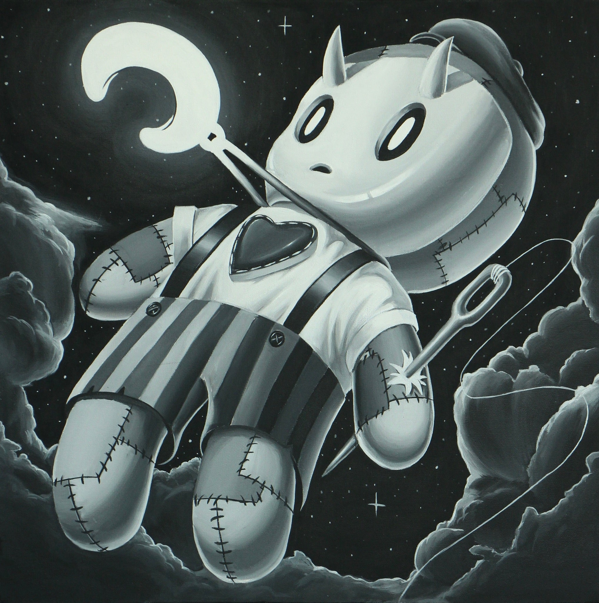 About the Artist: Dev O'Reilly is a surrealist painter known for his mischievous, dark, and playful artworks. Through his creations, he aims to strike a balance between innocent and darker subject matter. Halloween, in particular, serves as an endless source of inspiration for Dev, as it encompasses the fusion of fun and darkness that he seeks to capture in his art.