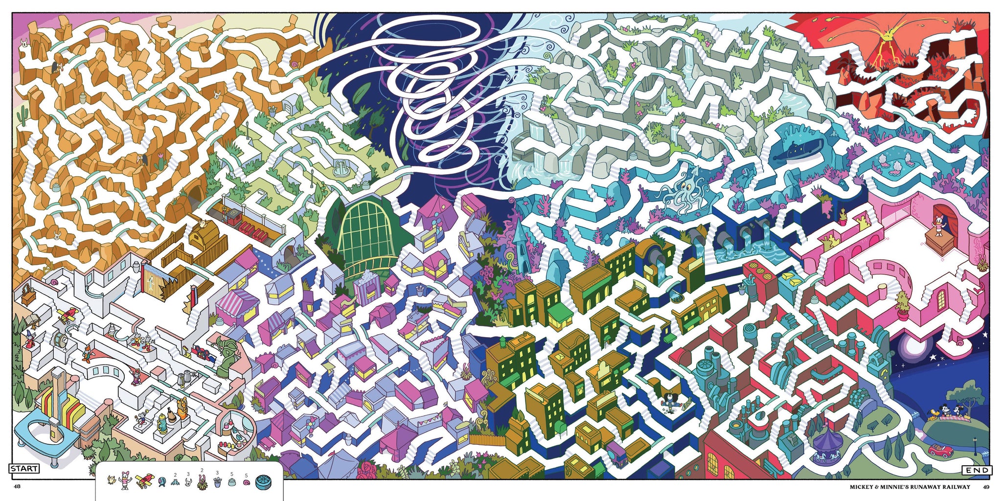 A unique interactive celebration of the colorful fun of the Disney Parks experience for fans and families, and for anyone remembering, planning, or dreaming of a visit. Inspired by the magic of the Disney parks, chart an imaginative course through their incredible attractions in this colorful, fun and challenging collection of all-ages mazes. Explore the Haunted Mansion, Pirates of the Caribbean, Space Mountain, 'it's a small world,' the Jungle Cruise, areas of EPCOT, and many other environments as never before. Hop on and off the monorail in search of findable elements within the maze. This all-new collection is the perfect interactive celebration of the wonderful worlds of Disney.