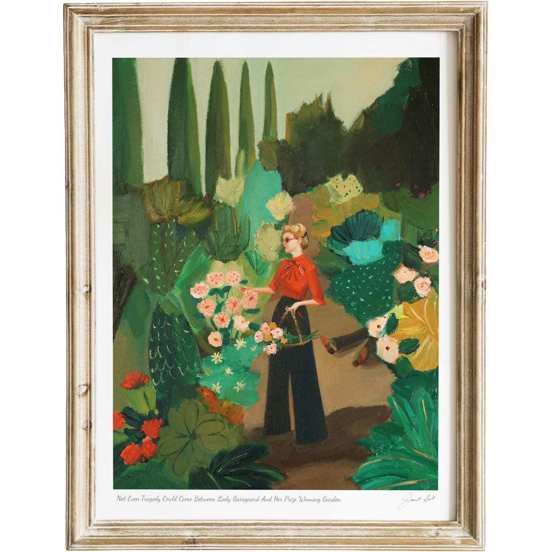 Title: Not Even Tragedy Could Come Between Lady Sarsgaard and Her Prize Winning Garden. Important Note: Frame not included. All prints are digitally signed and titled and come with an "Authentic Art Print" card. Prints are packaged with a lightweight chipboard backing for added stability.