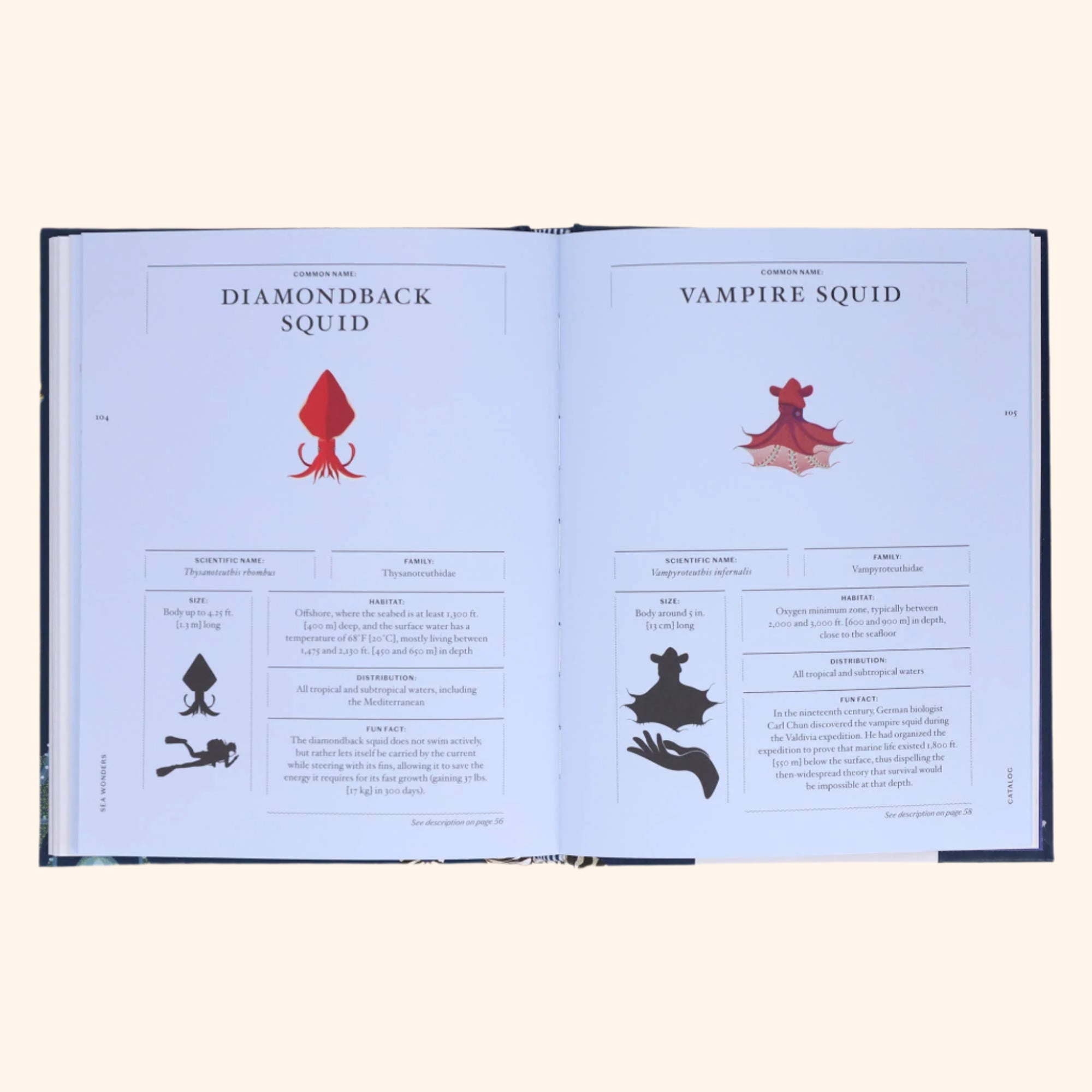 Explore the world of extraordinary marine creatures in this beautifully illustrated guide to thirty species of octopuses, cuttlefish, and squids. In Sea Wonders, discover the remarkable characteristics of cephalopods, enigmatic sea creatures with arms directly attached to their heads, who are masters of survival and transformation. Thirty species are collected in this fascinating guidebook, detailing their most surprising habits and abilities: Enterprising, resourceful, and intelligent, they know how to solve problems and can use objects as tools. They are notorious for escaping from aquaria. They can recognize people and can even feel dislike for some!