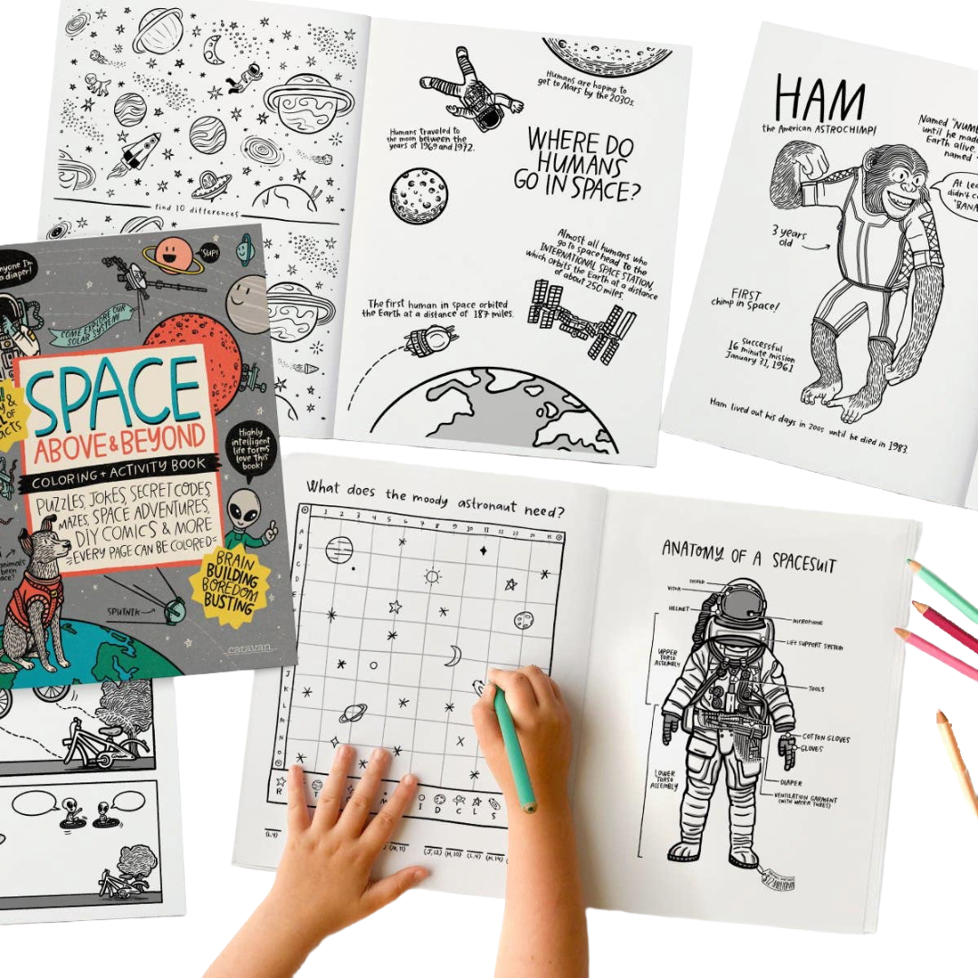 An activity book that is truly OUT OF THIS WORLD! Whether you are down-to-Earth or truly far-out, there’s something for you to love in this book. What animals have been to space? What have humans left on the moon? What is a red supergiant? This Coloring and Activity book is unlike anything else out there, and kids and parents can tell the difference! Full of jokes that keep kids laughing. Packed with fun facts that keep kids turning pages. Activities strike the right balance between challenging and doable, which makes them very rewarding to complete!